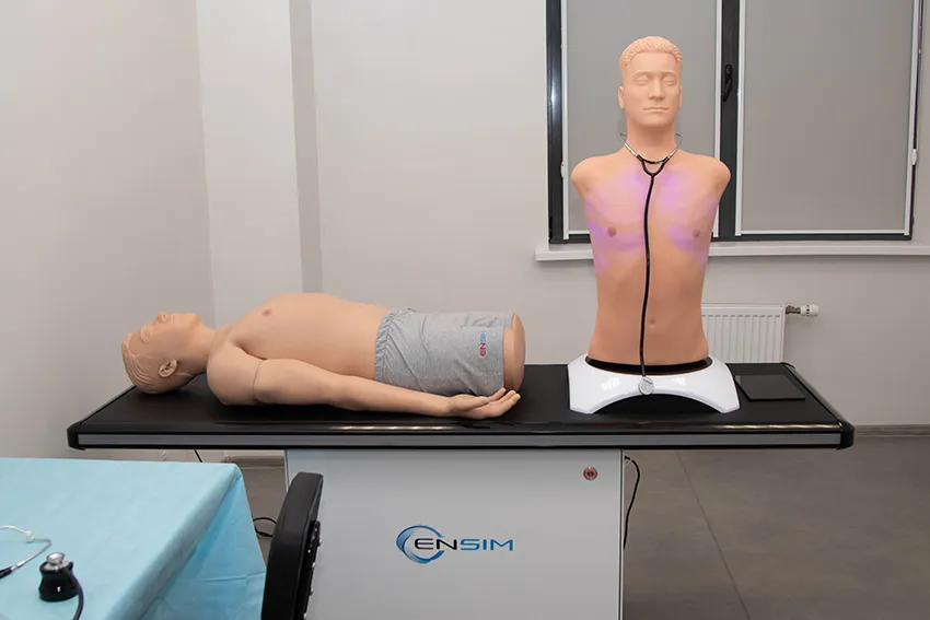 Система предназначена для обучения и отработки навыков прикроватного обследования пациентов с различными заболеваниями сердца и навыков аускультации легких. Точки аускультации соответствуют расположению сердечных клапанов реального пациента.