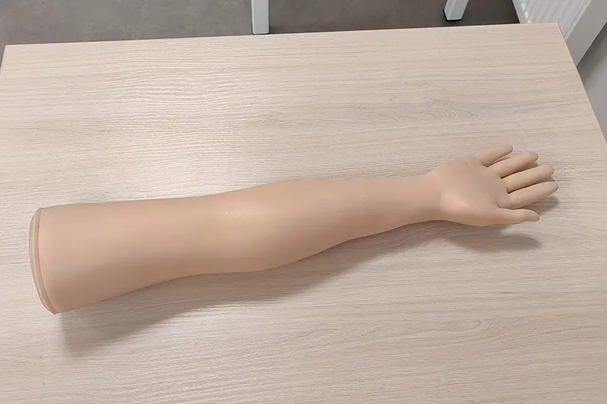 Общее описание симулятора: модель руки взрослого человека, кожа по тактильным ощущениям напоминает человеческую. Все скрытые точки могут быть продемонстрированы в ходе обучения.