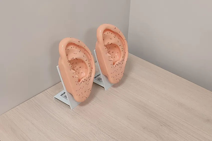 Модель ушей с обозначением точек китайской акупунктуры