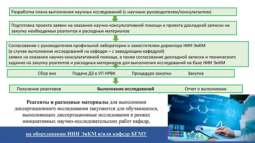 Порядок оформления докладной записки на приобретение реагентов ирасходных материалов для выполнения диссертационных исследованийаспирантов и докторантов БГМУ на базе лабораторий НИИ ЭиКМ